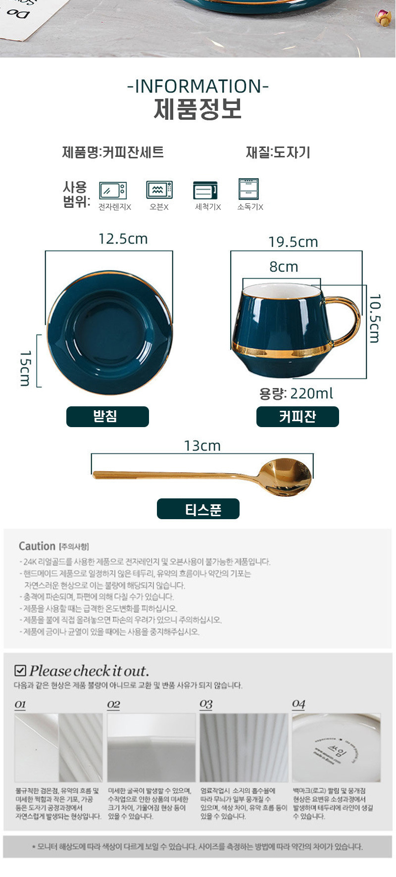[해외] 커피잔 세트 찻잔 집들이 선물 골드라인 손잡이 라떼잔 크리스마스 선물세트