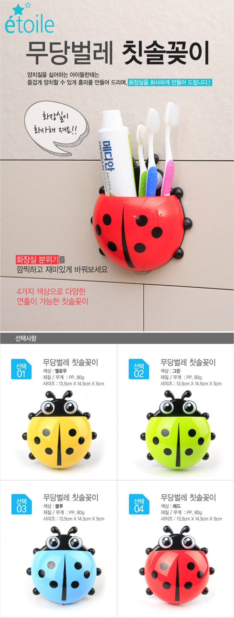 [리빙스토리] 무당벌레 칫솔꽂이 치약 면도기 걸이