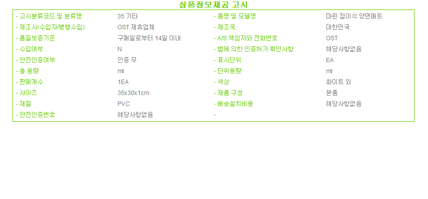 | 반품/교환 절차 | [구매관리 내 배송중] > 반품/교환하고자 하는 주문서 클릭 > 주문서 내 [반품요청] 또는 [교환요청] 클릭 반품지주소 [12813] 경기도 광주시 곤지암읍 경충대로101번길 17 (신촌리) 원솔루션 |